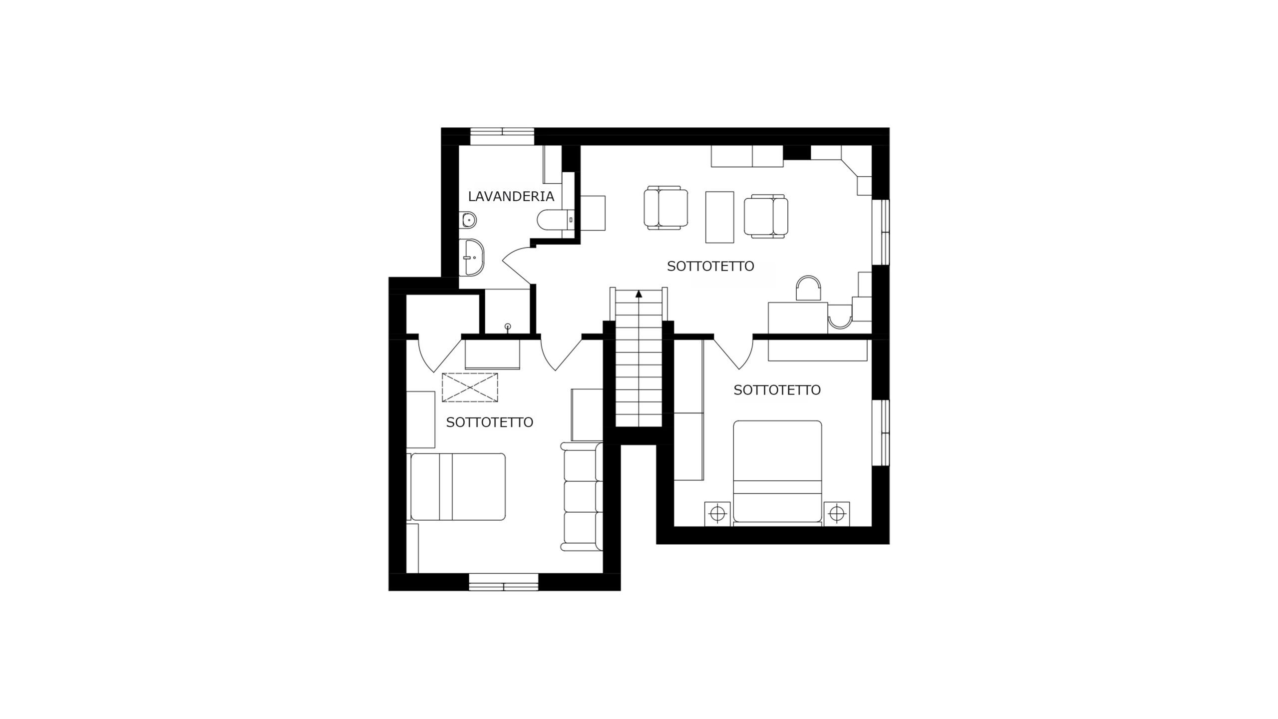 Il piano sottotetto, ben isolato e già sfruttato come spazio abitativo, offre diversi ambienti attualmente utilizzati come camere e zona soggiorno, oltre a locali di servizio, ampliando notevolmente la funzionalità complessiva della casa.