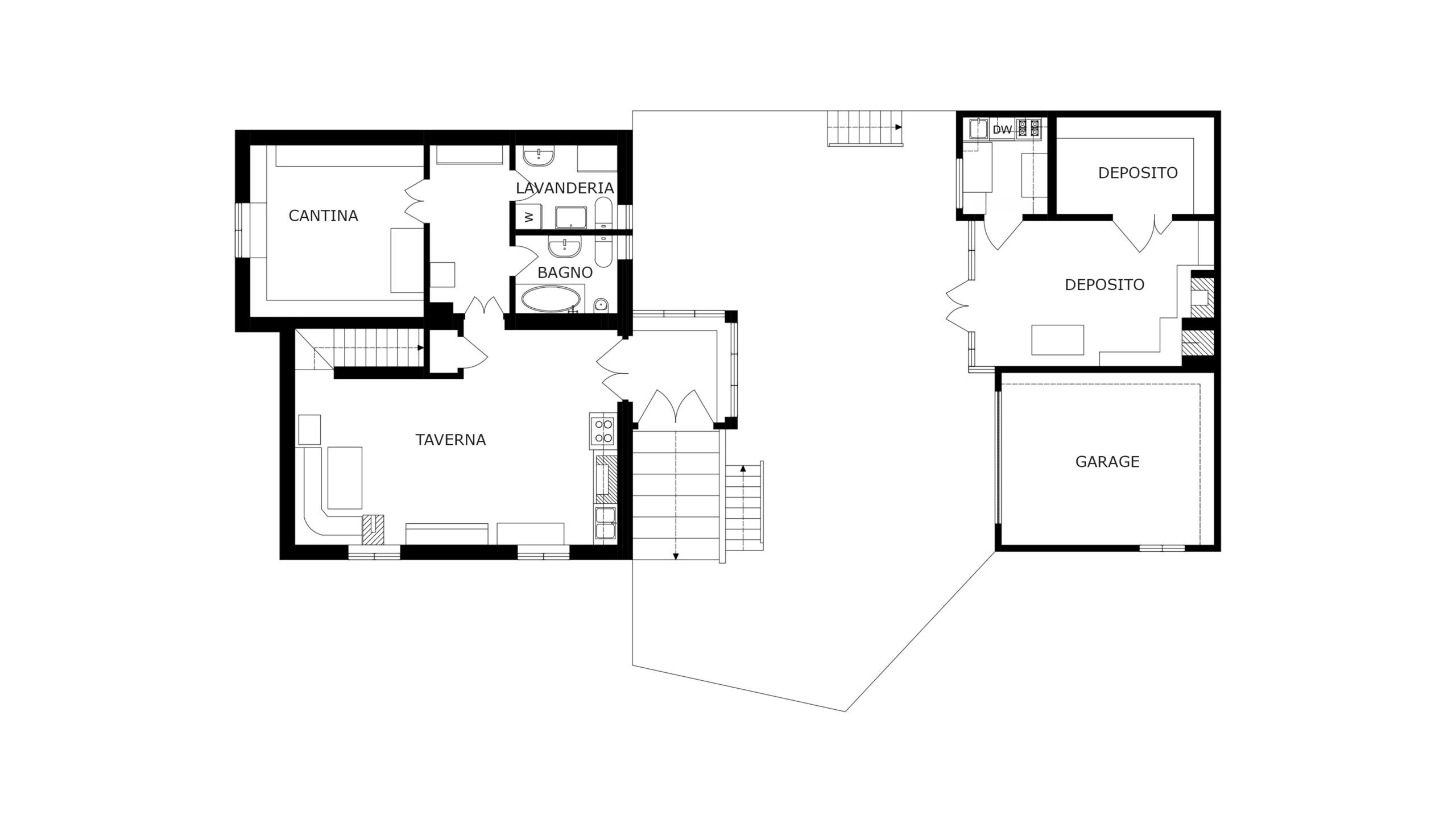 Il piano seminterrato rappresenta uno degli elementi più interessanti della casa: una grande taverna con camino e zona cucina, perfetta per momenti conviviali e per accogliere amici e familiari. Su questo livello sono presenti anche ulteriori locali accessori e spazi di servizio.