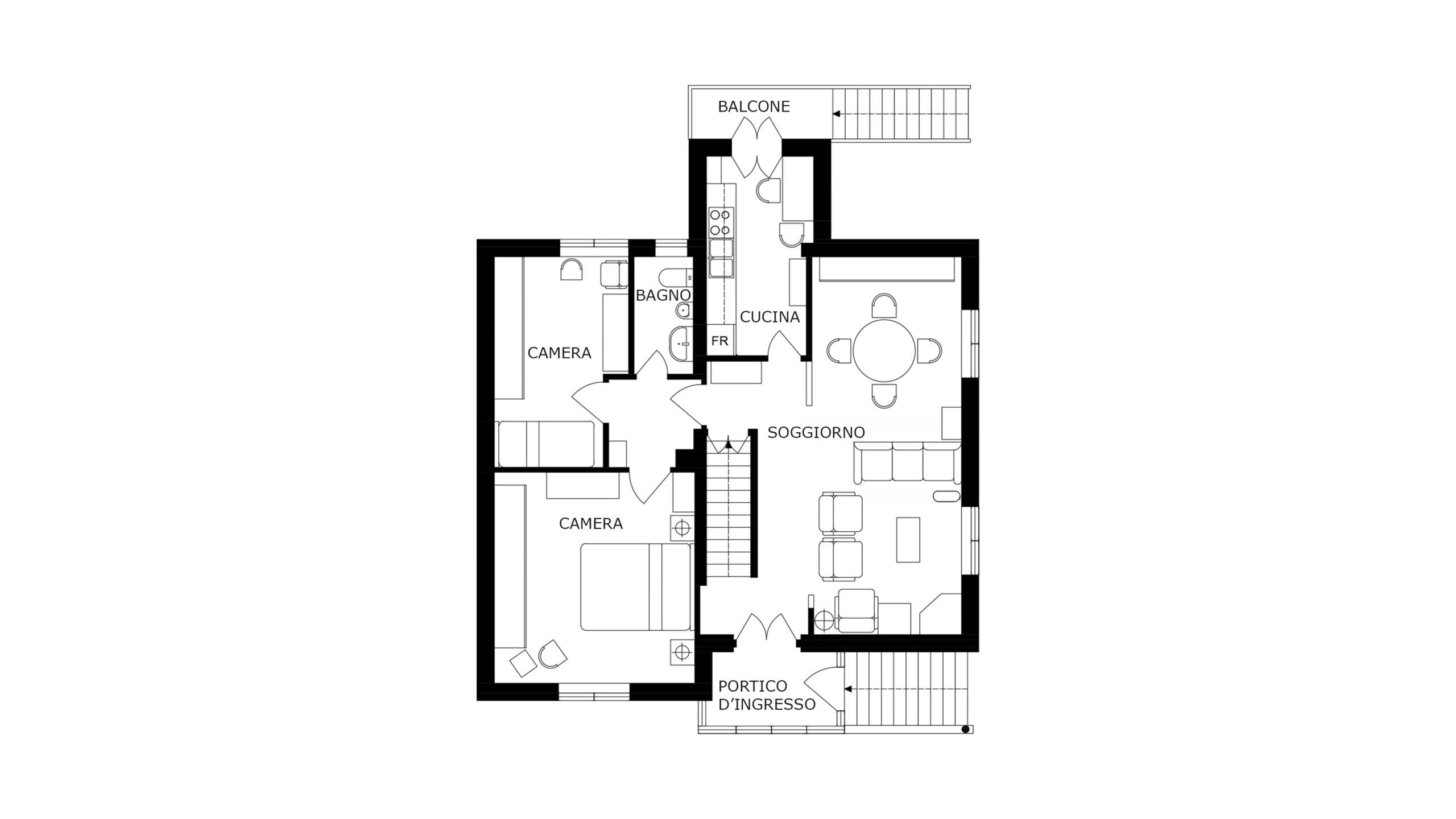 Sovrastante questo fabbricato si sviluppa un ampio terrazzo, con un ulteriore vano accessorio utilizzabile come legnaia o deposito.