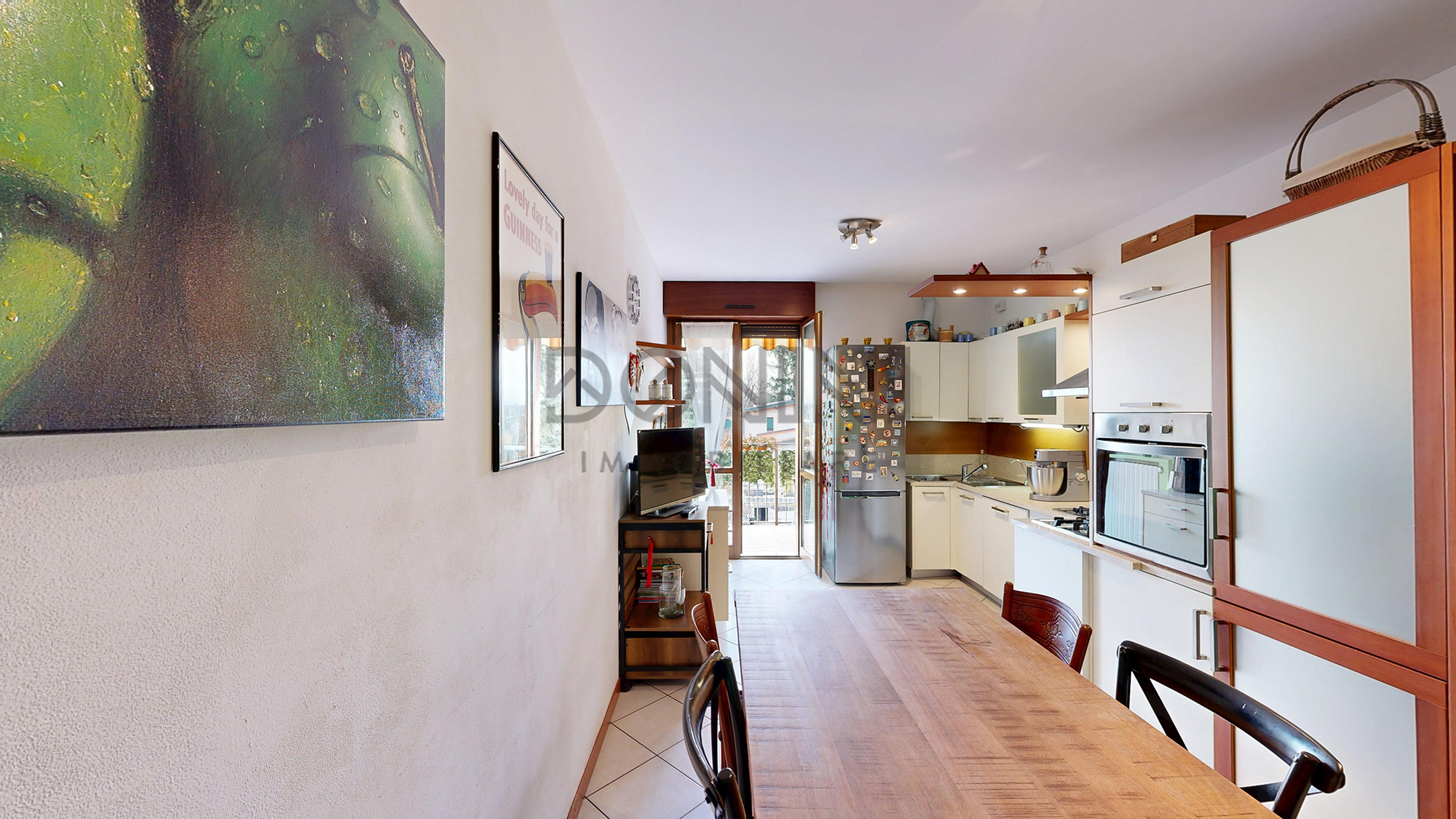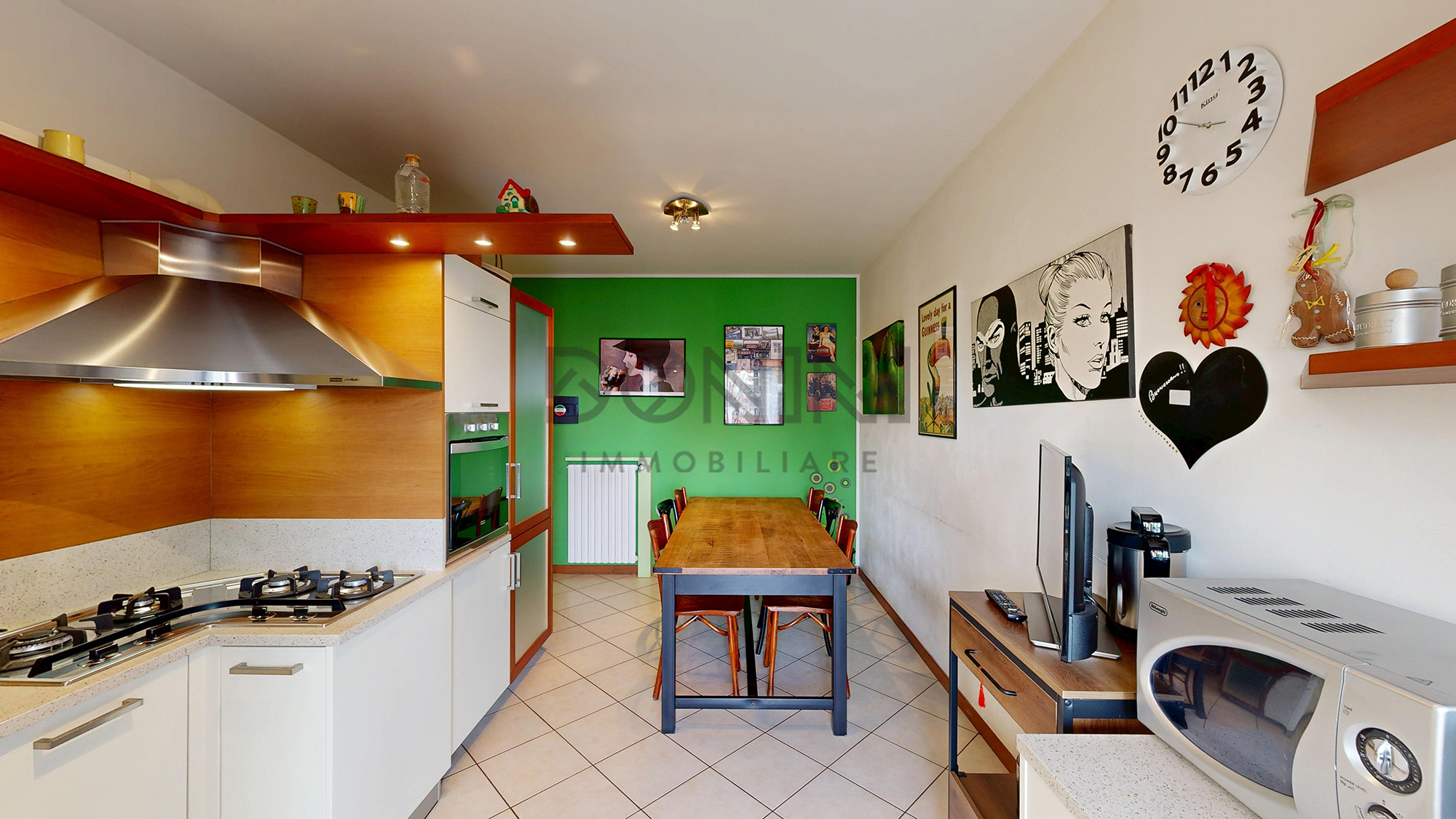 L’ingresso conduce a un locale giorno con cucina arredata, luminosa e spaziosa, ideale per la vita quotidiana e perfetta per chi ama cucinare e condividere momenti in compagnia.